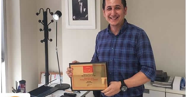 Adencon firmasının plaketi Serkan Ataş beye teslim edildi.