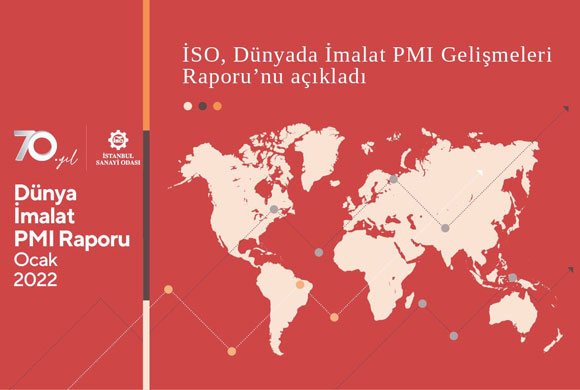 İSO, Dünyadaki İmalat PMI gelişmeleri ile ilgili Ocak 2022 raporunu yayınladı. 2022 Ocak'ta Küresel İmalat Sanayi Satınalma Yöneticileri Endeksi® (PMI) Aralık ayına göre 1,1 puan azalarak 53,2'ye düştü ve Ekim 2020'den beri en sınırlı büyümeye işaret etti. Dünya genelinde yeni ihracat siparişleri son 17 ayda ilk kez azaldı. Küresel ticaretteki ivme kaybını yansıtan bu düşüşte COVID-19 vakalarındaki artış ve ham madde arz kısıtları etkili oldu. Ocak'ta İmalat PMI hesaplanan 31 ulusal ekonomiden 26'sında endeks 50,0 eşiğinin üzerinde kaydedildi. Ancak bunlardan 14'ünde büyüme Aralık ayına göre yavaşladı.